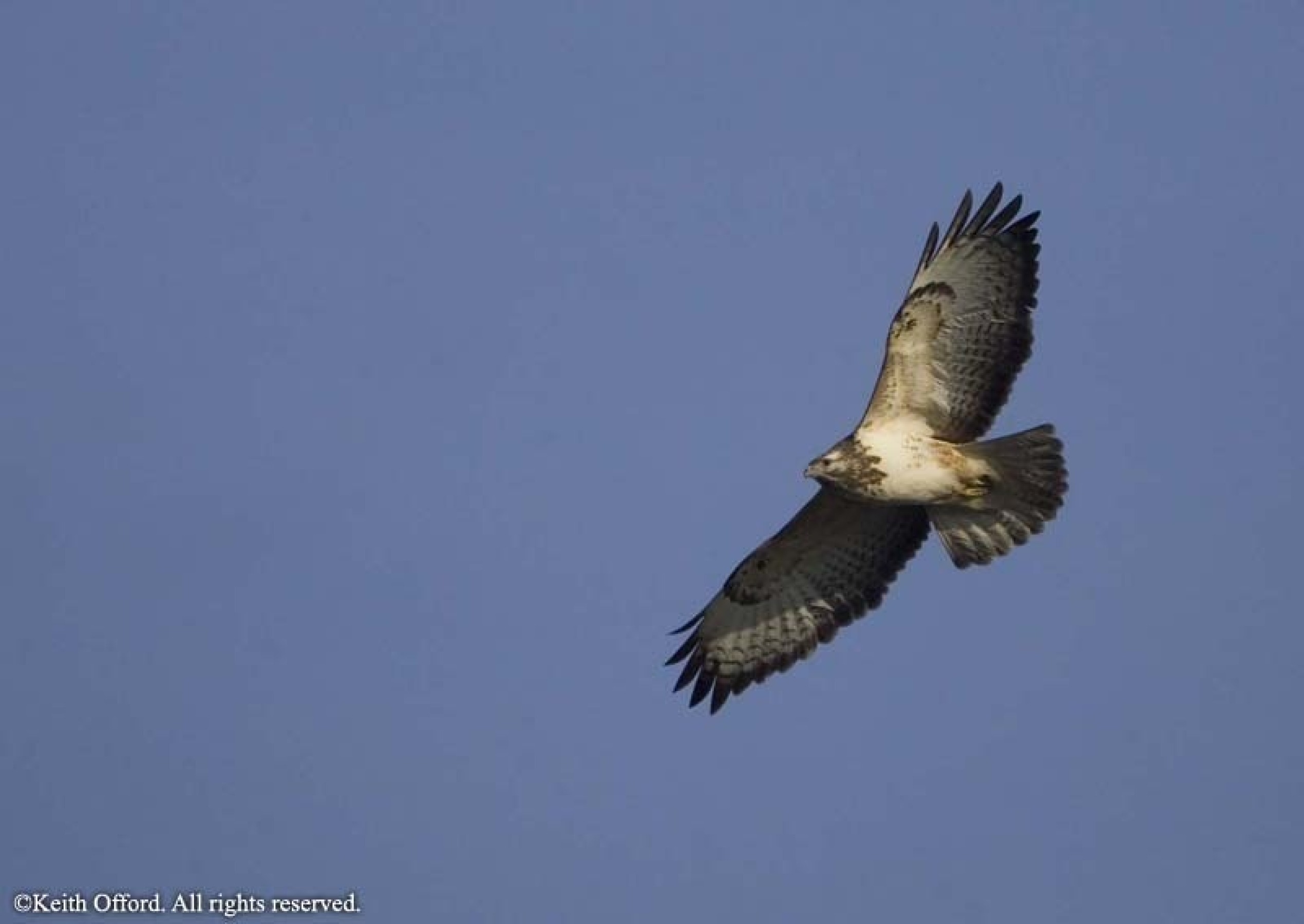 the plumage of Common Buzzard is extremely variable. This particularly white form is not uncommon in Holland and some individuals have large areas of white on their upper parts making them look like a different species.