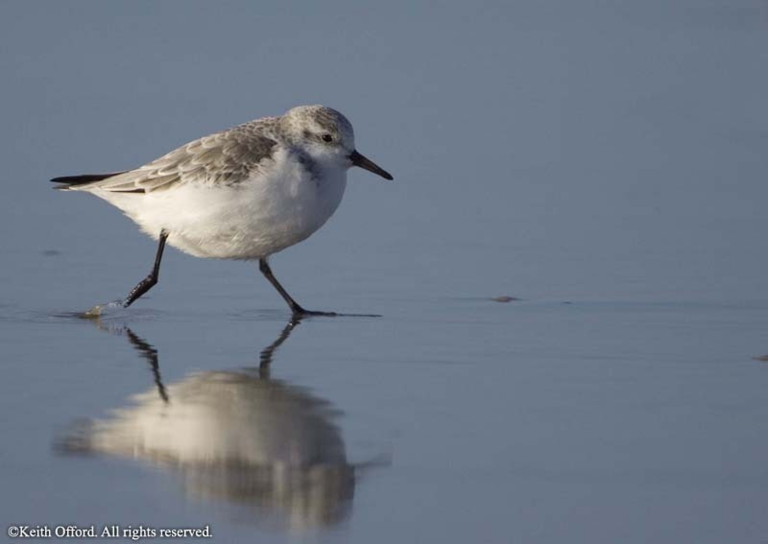 the clockwork-toy sprint along the beach is unmistakeable Sanderling behaviour. This one was photographed on the edge of the North Sea in Holland - perhaps it was trying to keep warm!