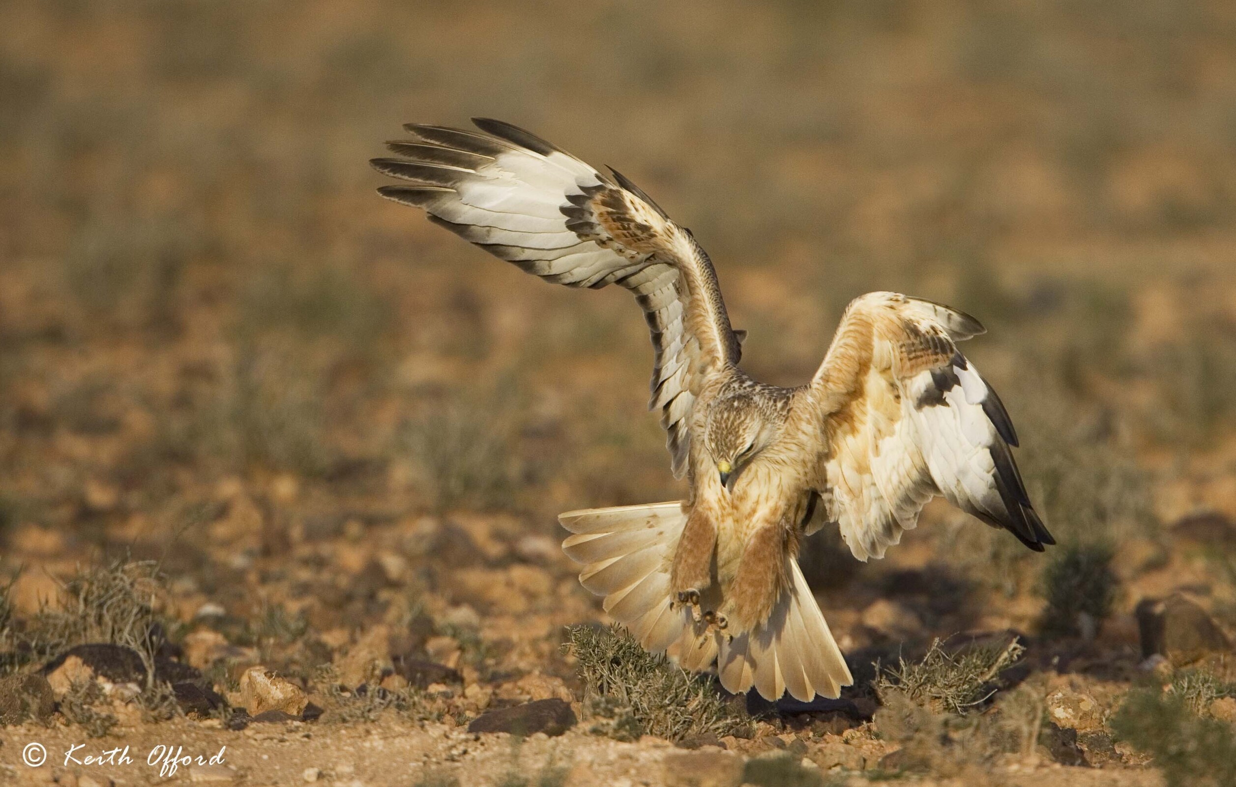 The semi-desert plains of southern Morocco are good hunting grounds for Long-legged Buzzards (N. African race) which target gerbils amongst other prey items.