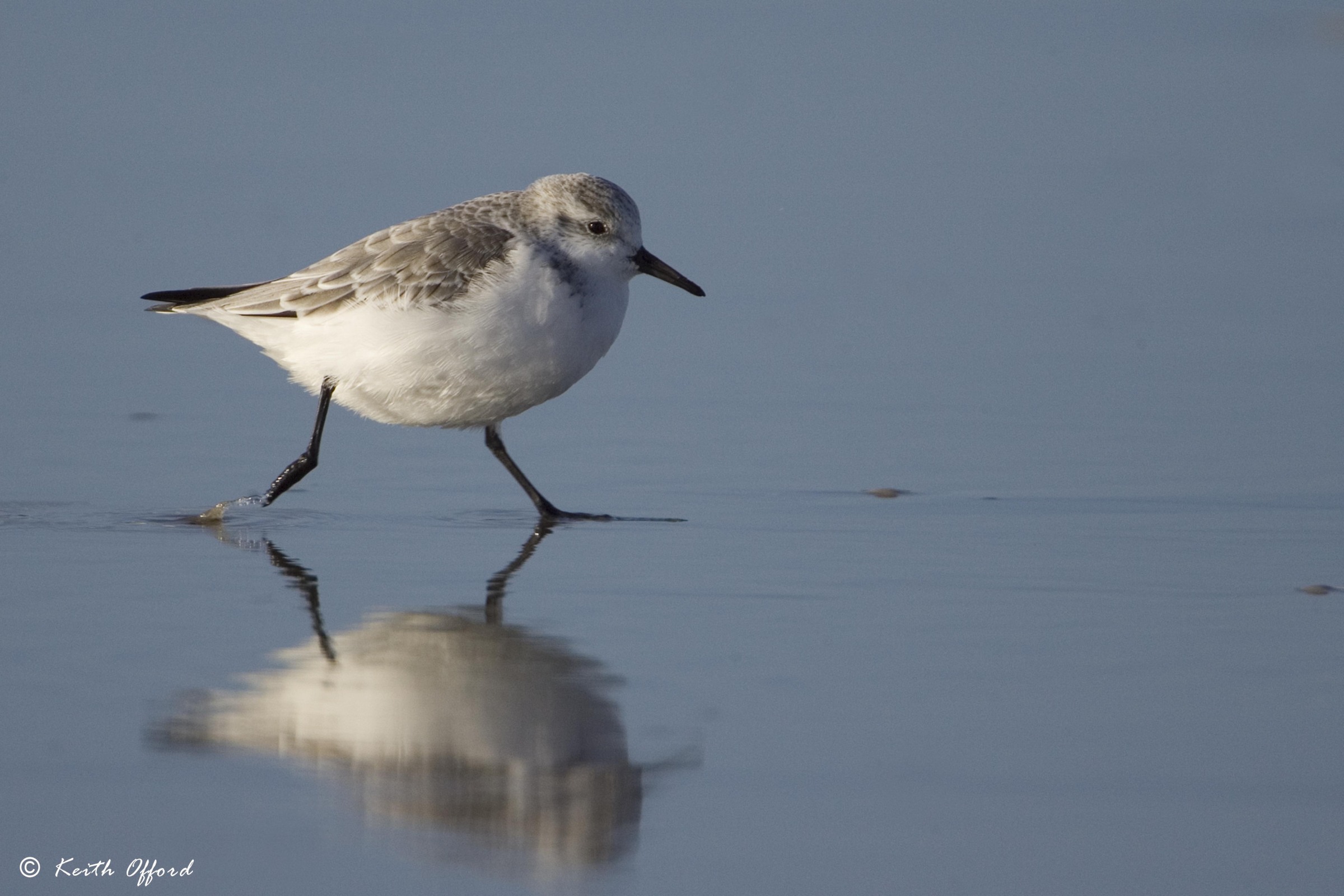 the clockwork-toy sprint along the beach is unmistakeable Sanderling behaviour. This one was photographed on the edge of the North Sea in Holland - perhaps it was trying to keep warm!