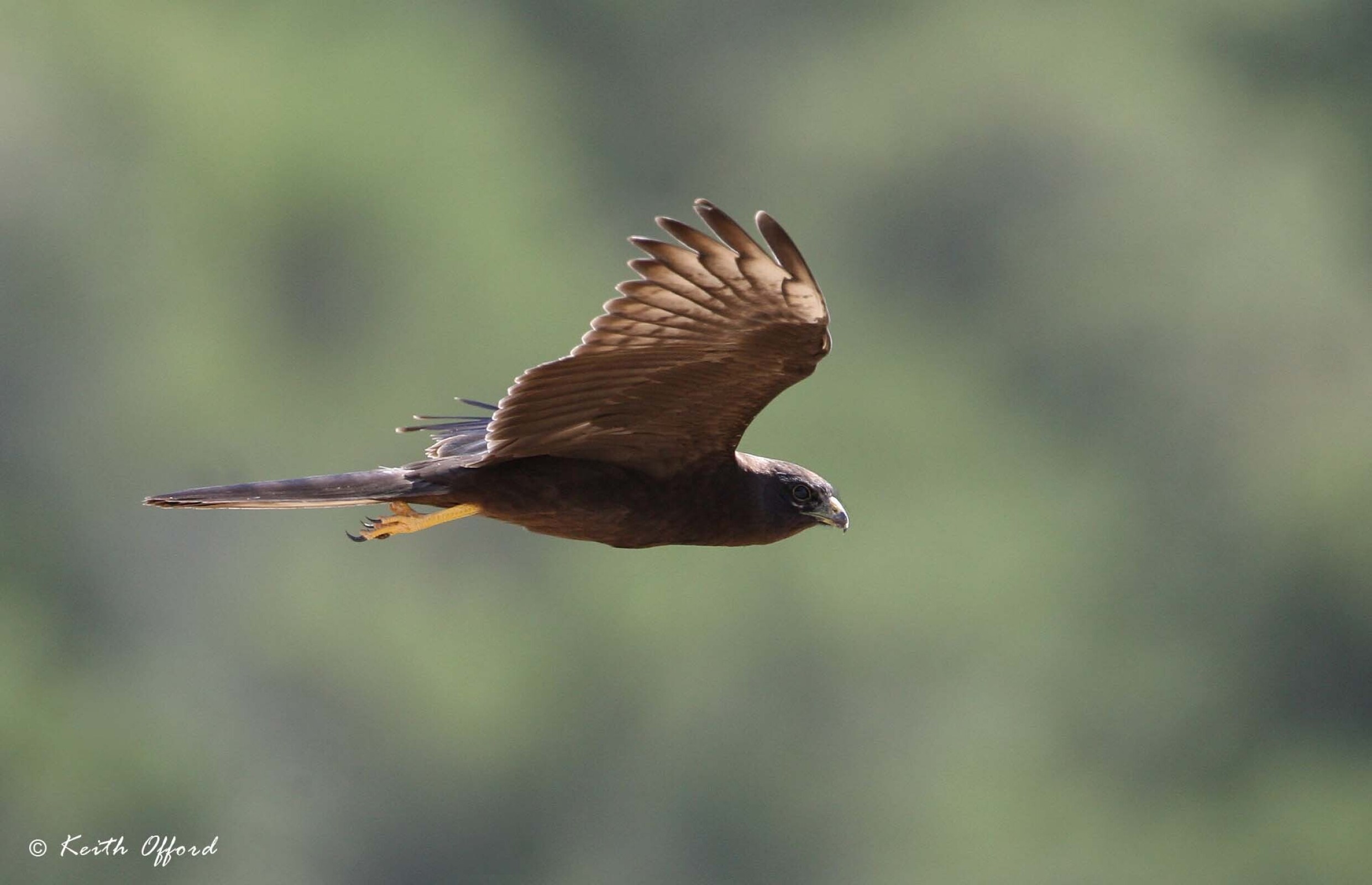 Once thought of as being melanistic, the dark morph Montagu's Harrier is a rare variant, this colour probably determined by a recessive gene. The dark morph birds are seemingly perfectly well accepted by other, normal-coloured birds, despite their obvious difference.